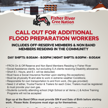Fisher River Cree Nation is a community in which our history, language, traditions, and culture are paramount to who we are as a people. We will protect and maintain the spirit and intent of the treaties and our inherent rights. Fisher River will be a self-sustaining progressive community with a strong and accountable government. We will provide an environment where all people are healthy, safe, and respected.